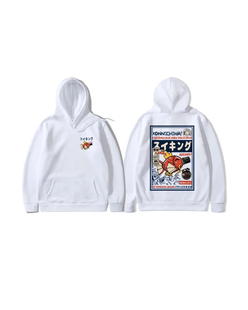 Beyaz Japon Kanji kirpi balık baskılı rahat sıcak yumuşak kad