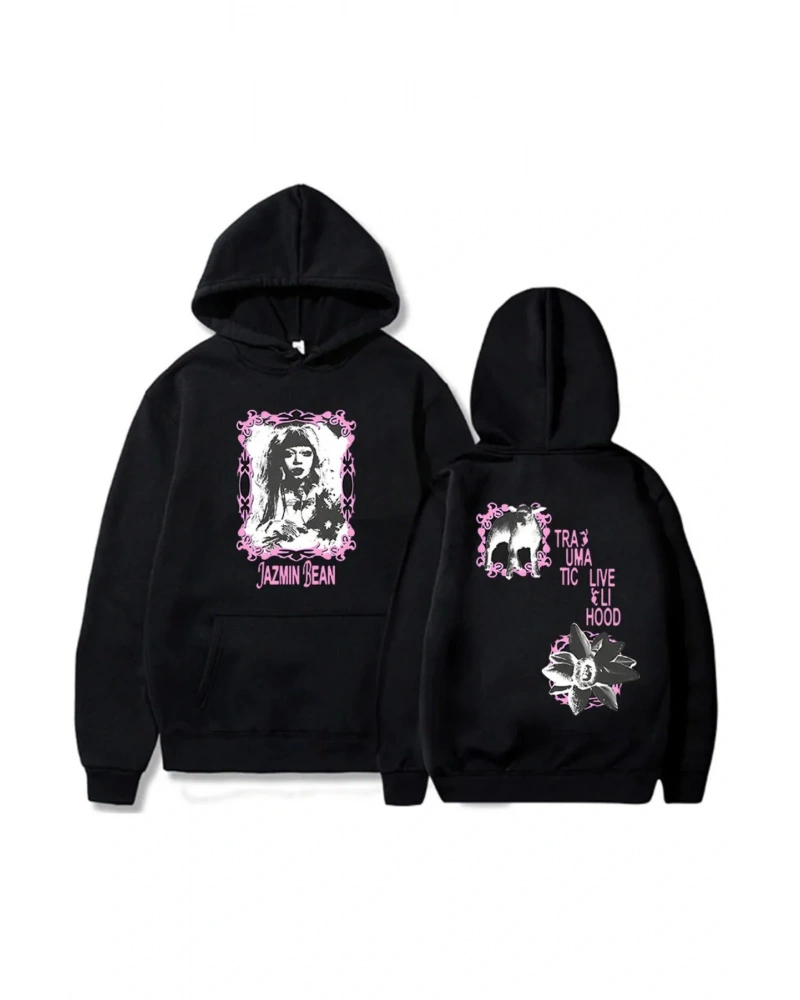 Oversize Unisex Siyah Yaşam Çiçeği Hoodie