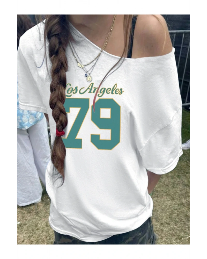 Kayık Yaka 76 Baskılı Oversize %100 Pamuk