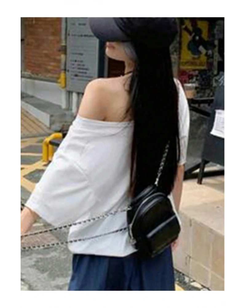 Beyaz Kadın Düşük Omuz Kayık Yaka Shy You Baskılı