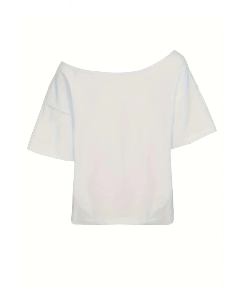 Beyaz Kadın Düşük Omuz Kayık Yaka Shy You Baskılı