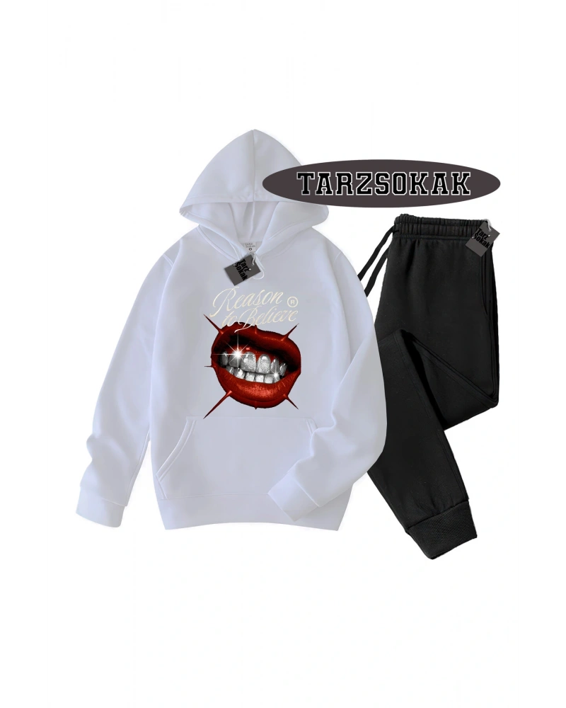 Beyaz Kapşonlu Reason Detaylı ikili TAKIM