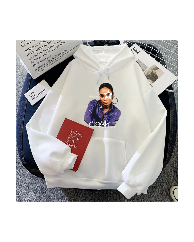 Beyaz kıcı Kehlani Crash Hoodies Grafik Elbise Sudaderas Para Mujer uKa