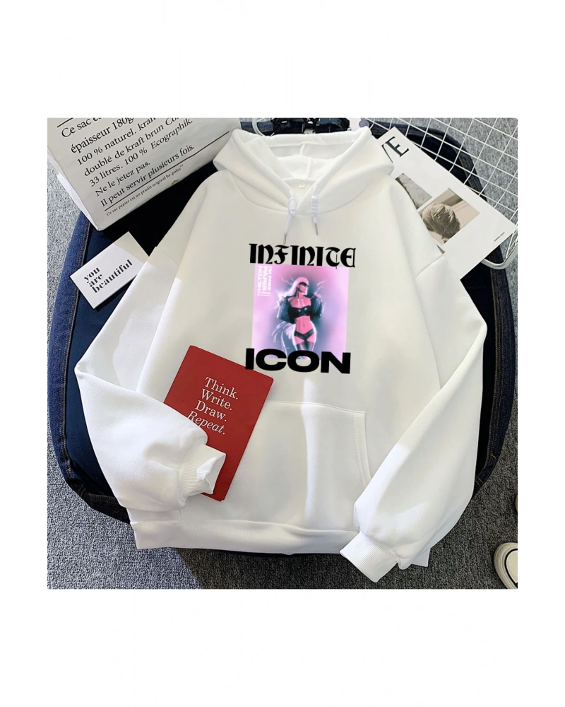 YQYQ----Oversize Duvar Basketbol Oyun Oyuncu Spor Tasarım Baskılı Unisex Kapüşonlu Sweatshirt Hoodie Beyaz