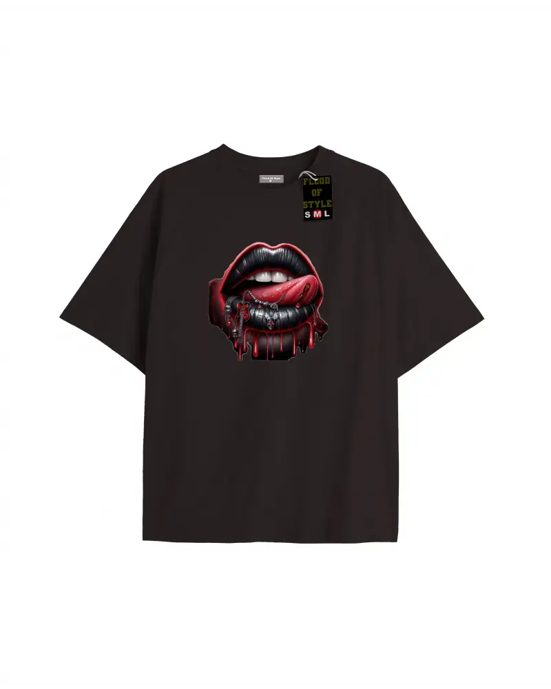 Beyaz Oversize T-shirt dudak dil diş Özel tasarım