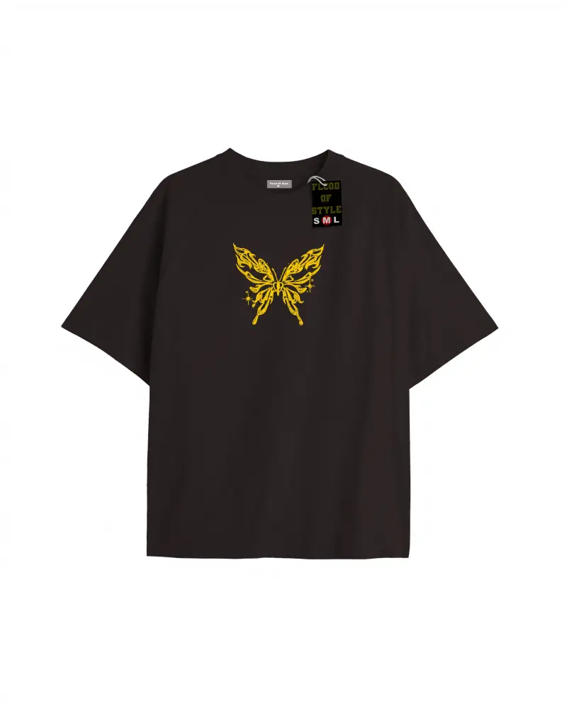 Beyaz Oversize T-shirt kelebek sarı Özel tasarım