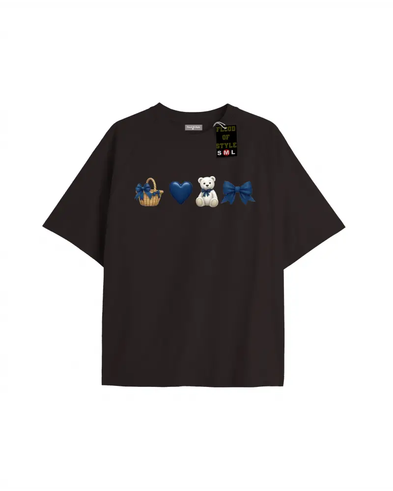 Beyaz Oversize T-shirt sepet ayıcık kalp Özel tasarım