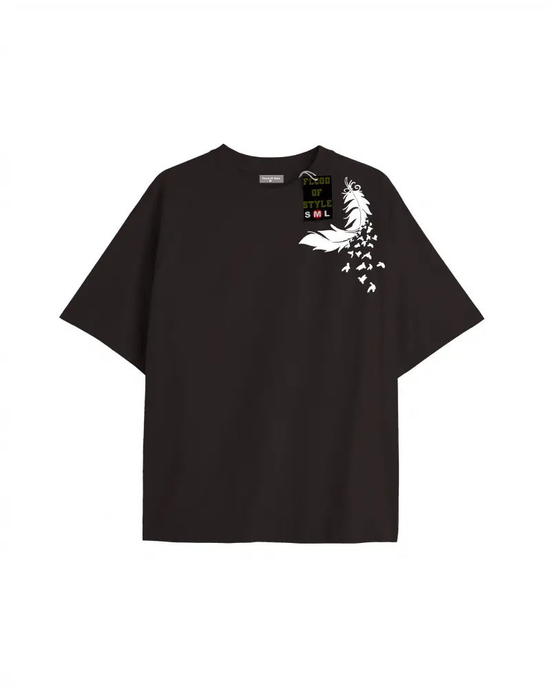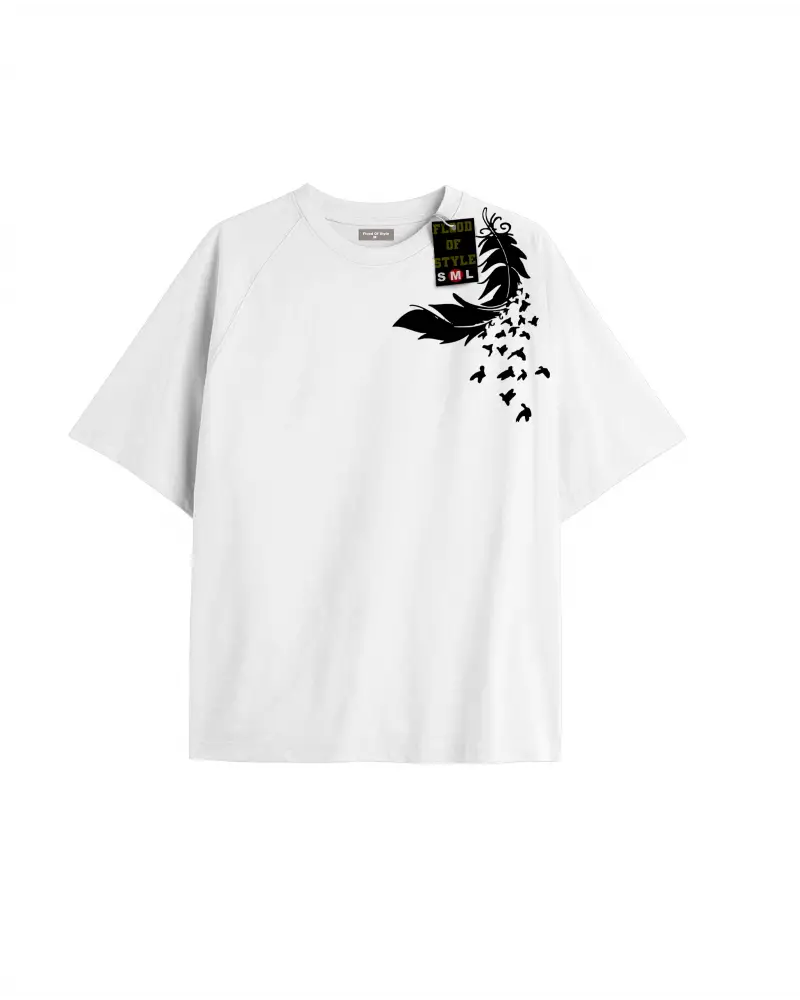 Beyaz Oversize T-shirt gül yaprak dal Özel tasarım