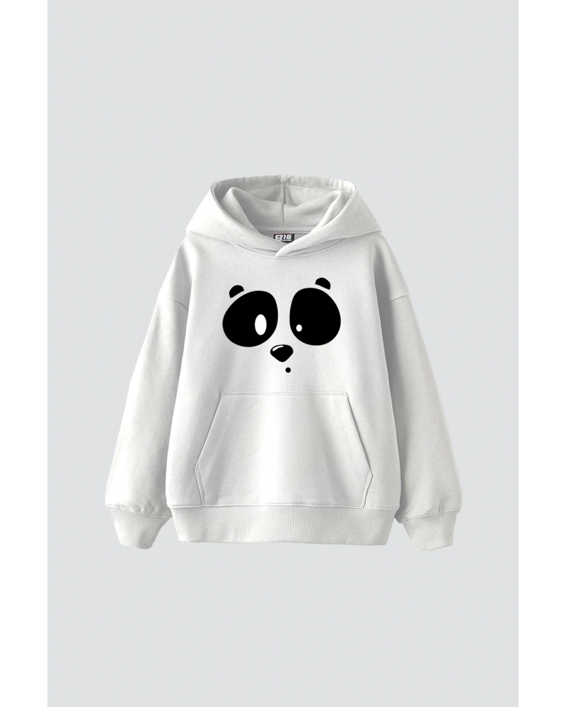 YQYQ----Oversize Sevimli Panda Cep Tasarımlı Baskılı Kapüşonlu Sweatshirt Hoodie Beyaz