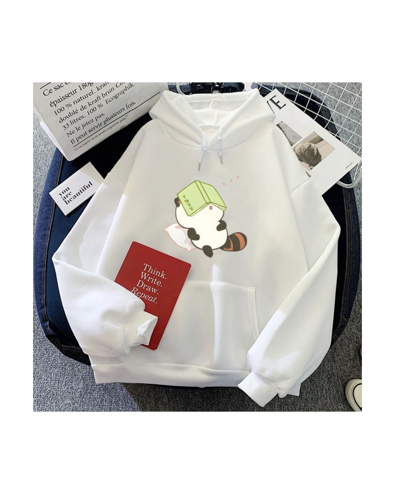 Beyaz Rakun Çalışması Uyku Grafik Kawaii KarikatürKız Rahat