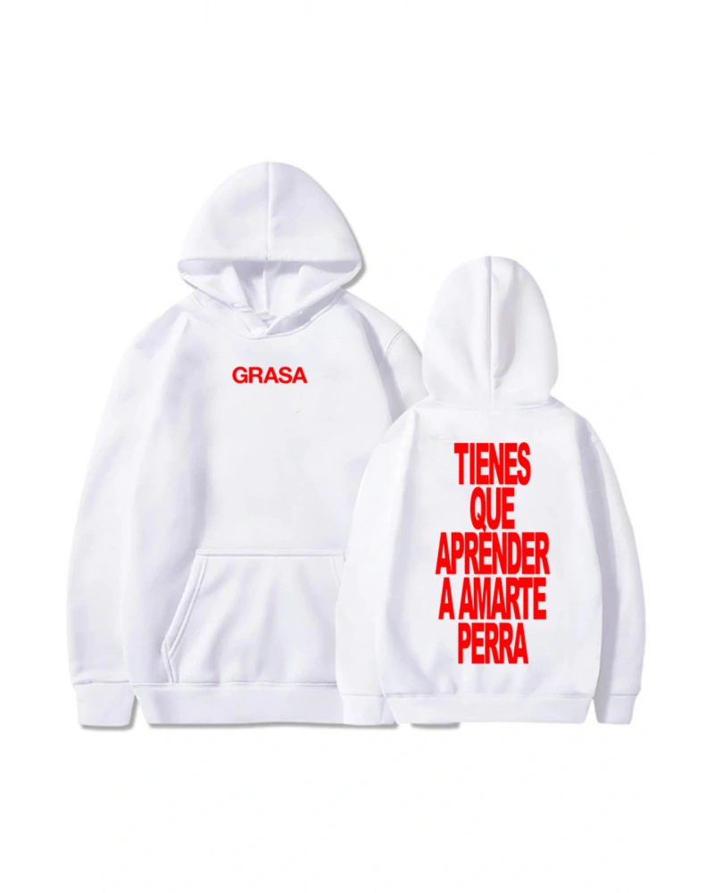 Beyaz TIENES QUE ANRENDER A AMARTE PERRA kıcı Nathy Peluso Grafik Uzun Koll