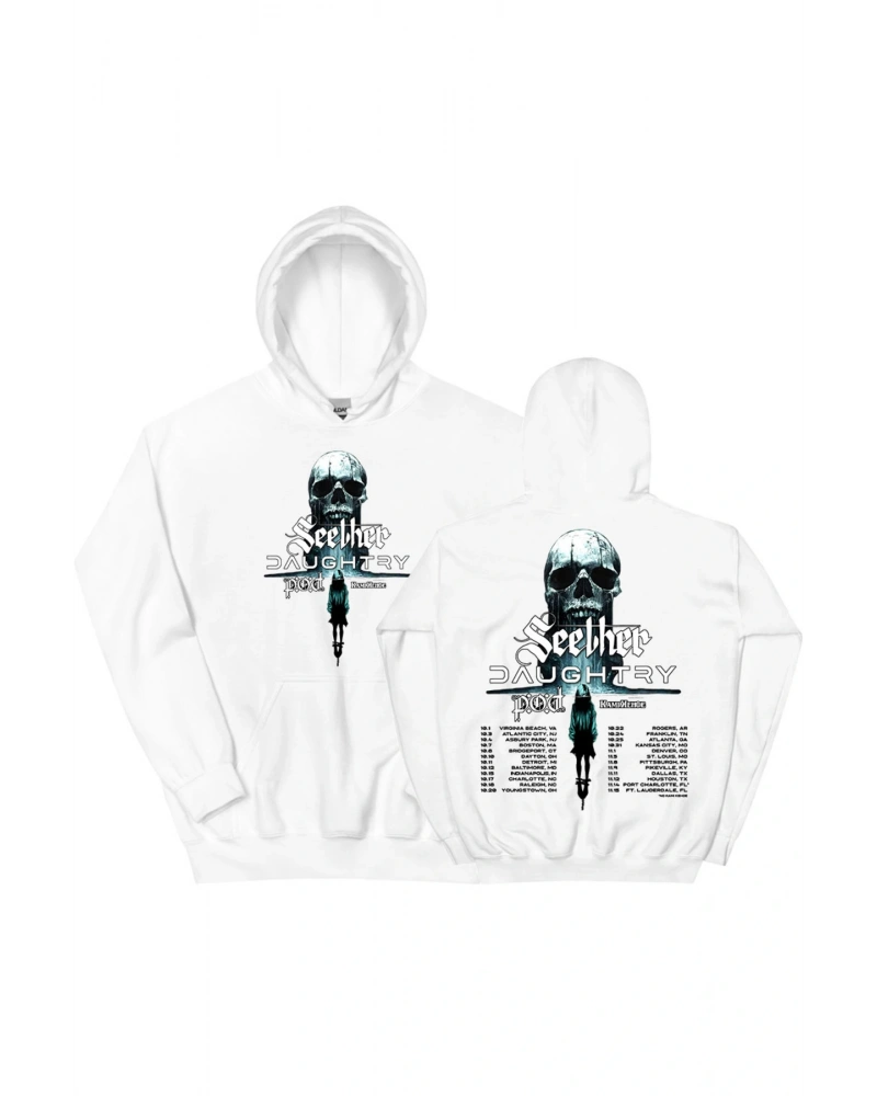 Beyaz Unisex 2025 Co-Headline Turu Kapüşonlular SEETHER ve Grunge Moda Sokak Şıklığı