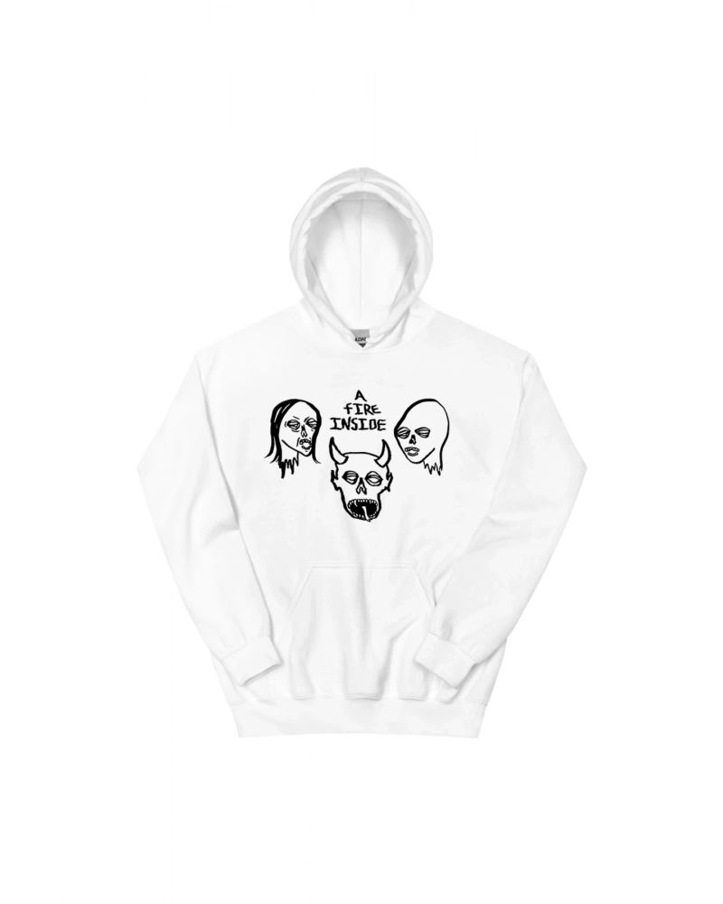 Beyaz Unisex A Fire Inside Siyah Hoodie Yüzleri Fildişi AFI Grafik Moda Kapşonlu