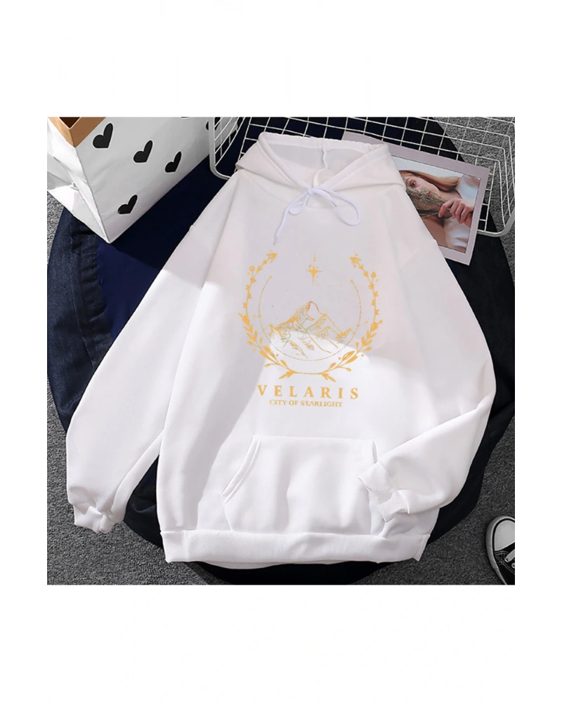 Beyaz Unisex ACOTAR Velaris baskı grafik Vintage rahat giyim erkekSudaderas pol