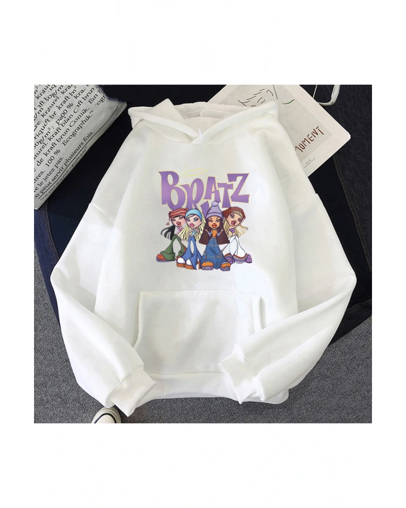 Beyaz Unisex Bratz Hoodie Rahat Kalın bratz Elbise udadera Japon Sokak Şıklığı