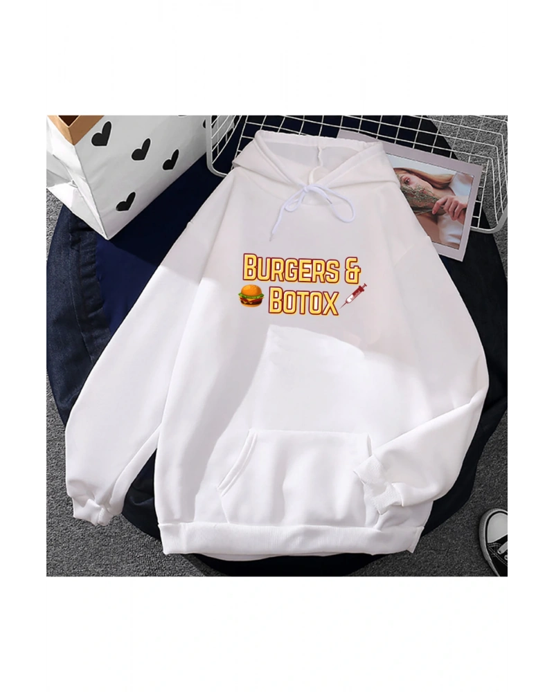 Beyaz Unisex Burger ve Botox satış Sunset caderas Con Capucha grafik giysi Moletom yu