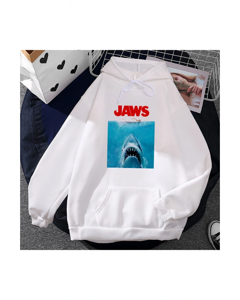Beyaz Unisex Çeneler Thriller film kıyafetleri kapşonlu gra