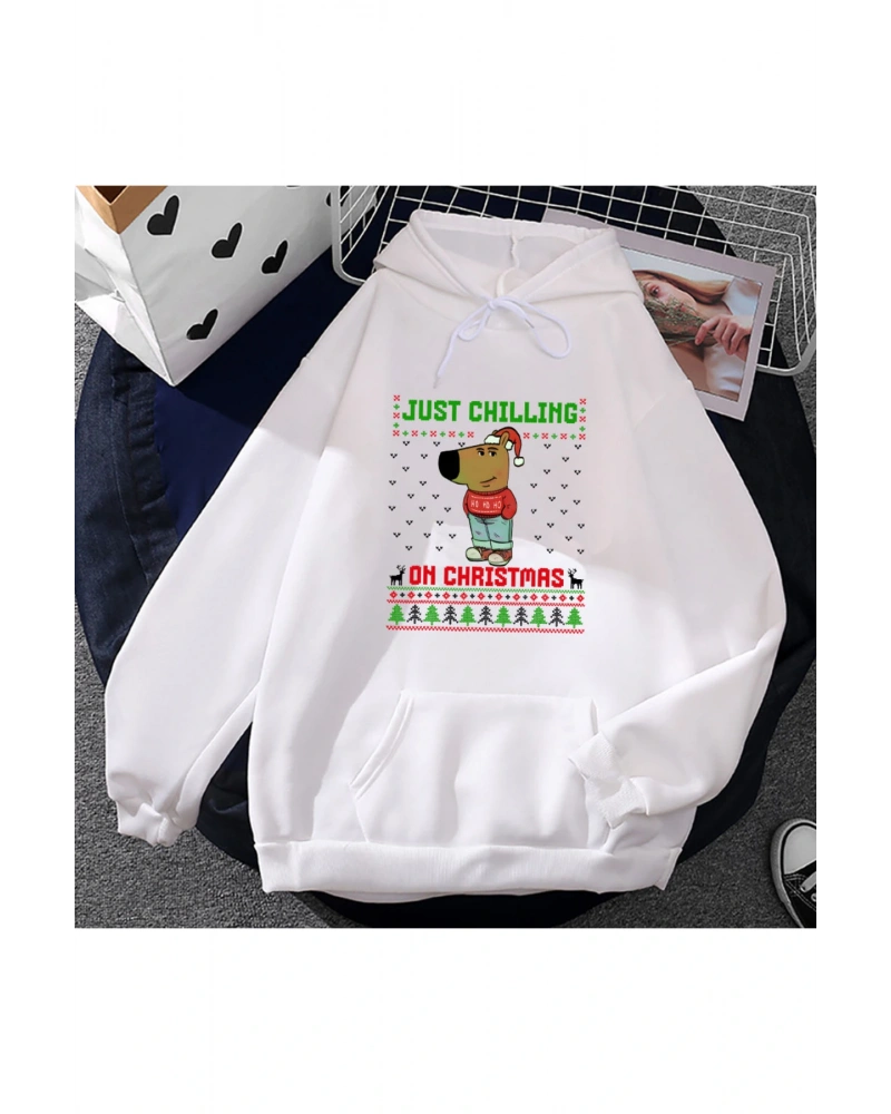 Beyaz Unisex Chill Guy Chilling Noel Moletom Masculino KapşonluekKış