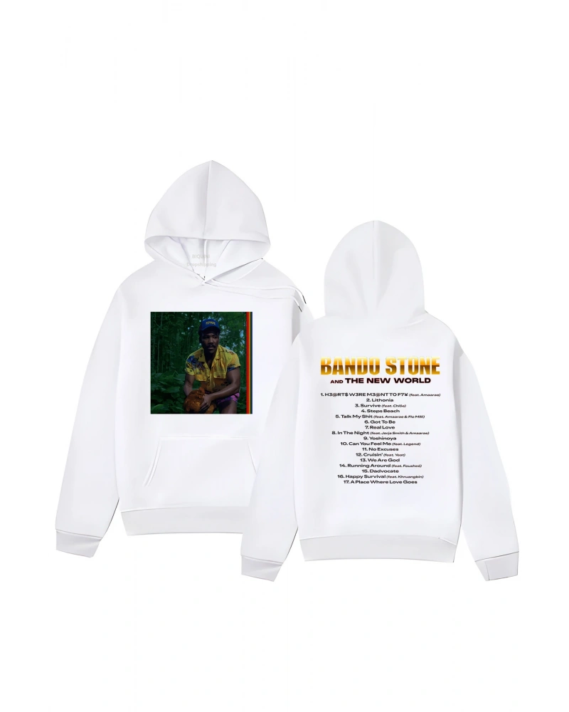Beyaz Unisex Donald Glover Bando taş ve yeni dünya Hoodieslar rahat Pop