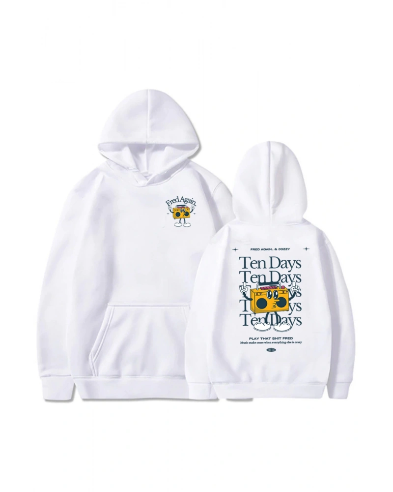 Beyaz Unisex Fred tekrar on gün kıyafetleri kapşonlu Hip Hop Streetwear Hombre dera