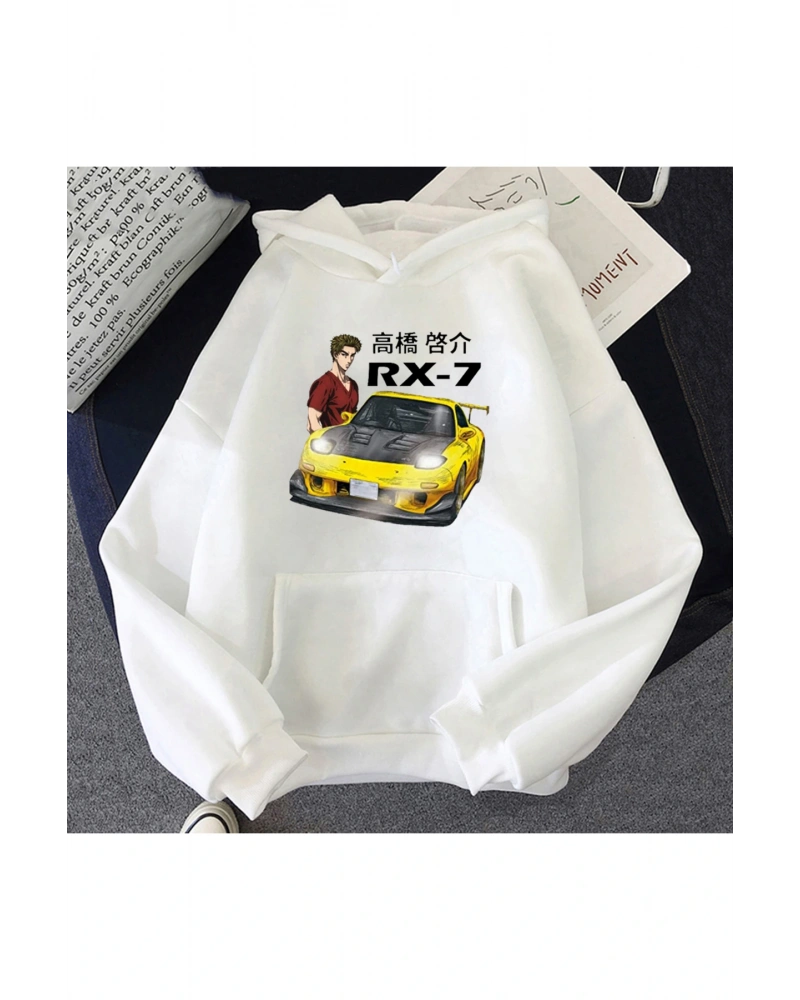 Beyaz Unisex Fujiwara Tofu dükkanı AE86 Manga Hoodie lar kewomen ke Takahashi FD RX7 kapüşon