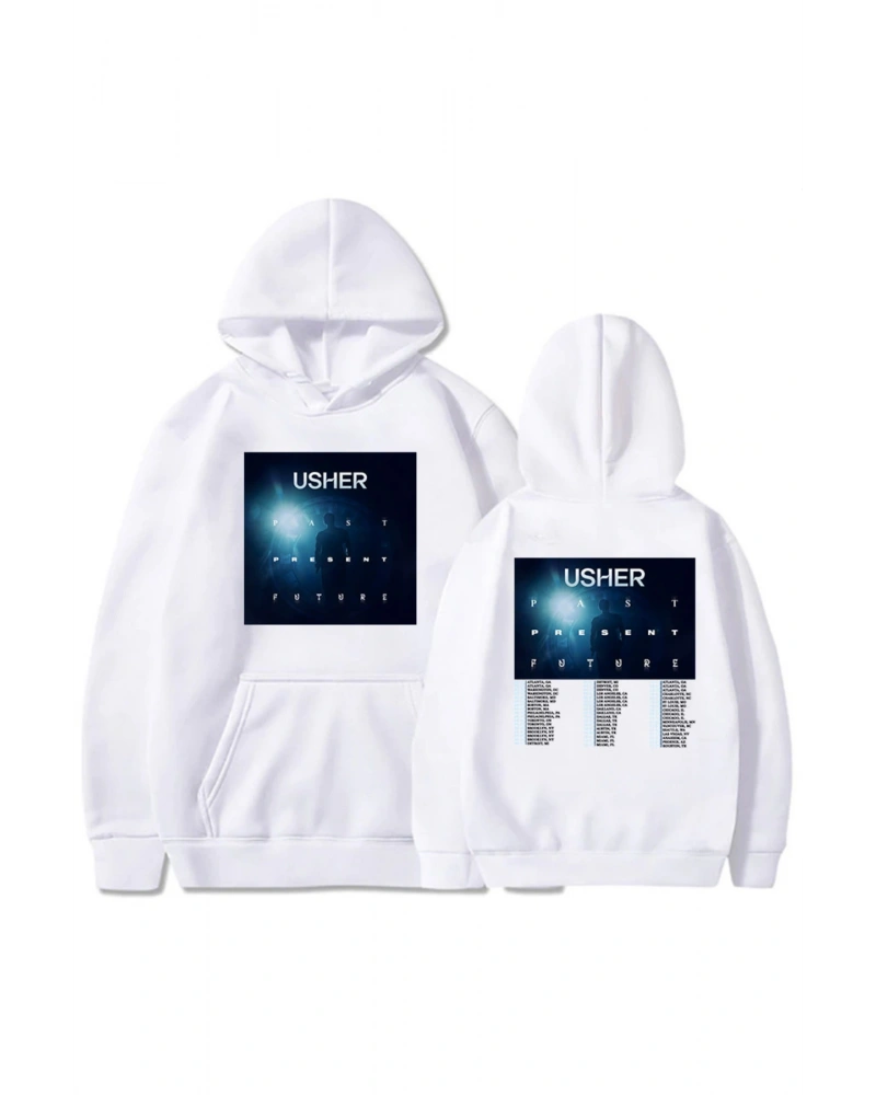 Beyaz Unisex Geçmiş mevcut gelecek tur Usherr rapçi grafik Casual kaz