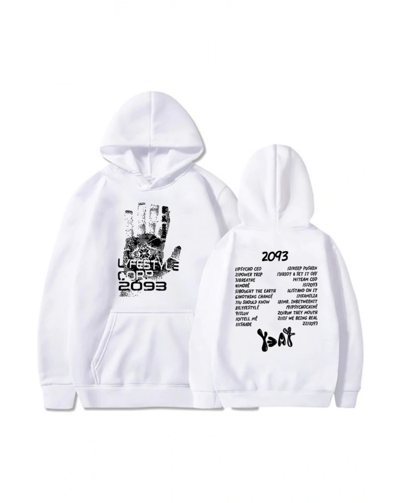 Beyaz Unisex giysi 2093 Yeat kalça HopMoletom kapşonlu Streetwear uzun k