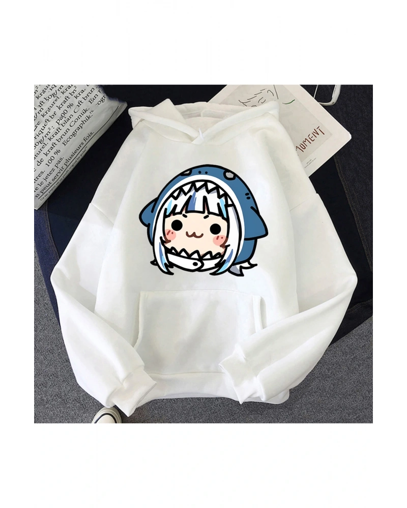 Beyaz Unisex Hololive İngilizce VTuber Gawr Gura Merch nedensel japon Streetwear uzun kol