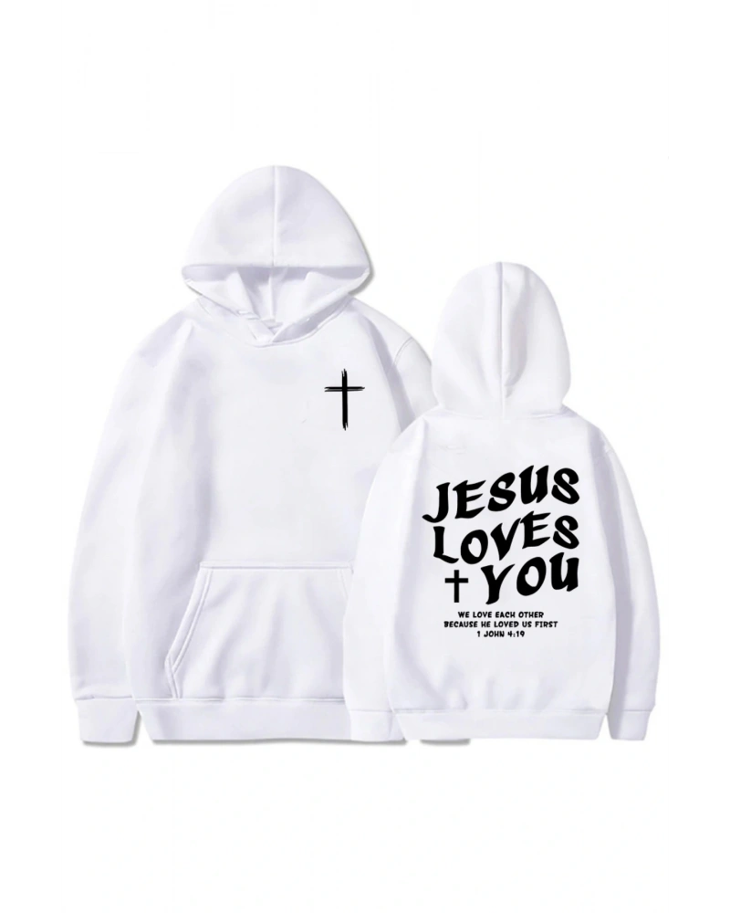 Beyaz Unisex İsa Seni Seviyorum Hıristiyan İncil Ayet Mektup Grafik Baskı Rahat Kadı