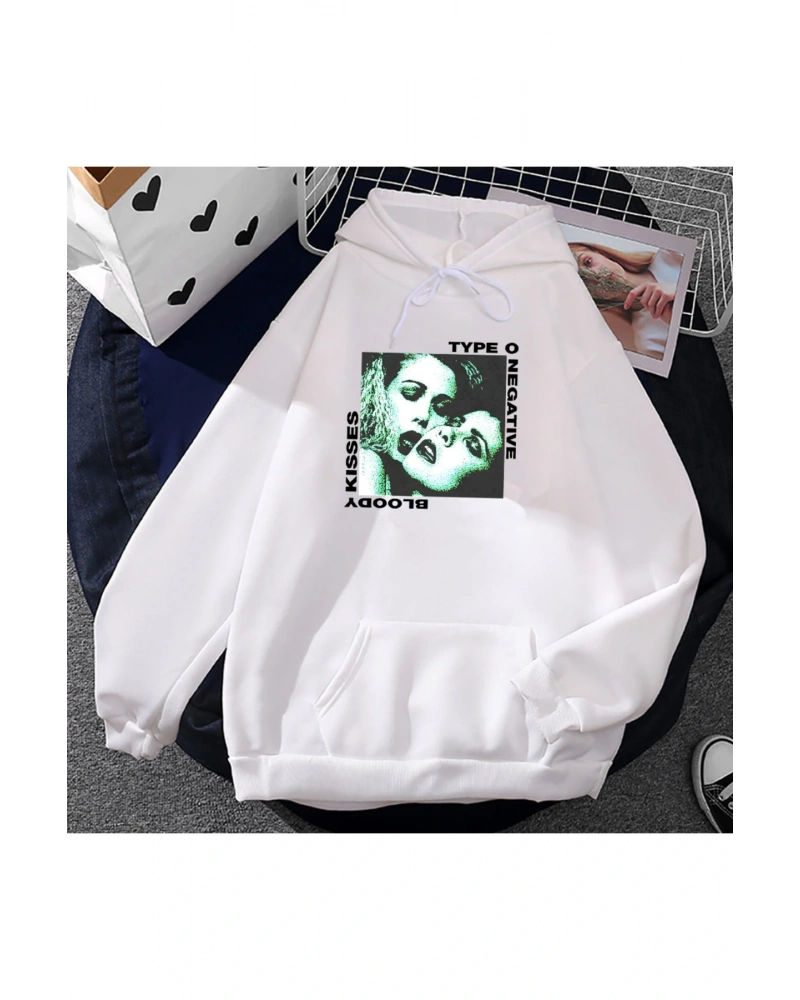 Beyaz Unisex Kanlı öpücükler tipi O negatif Rock Band ağır zihinsel moda kı