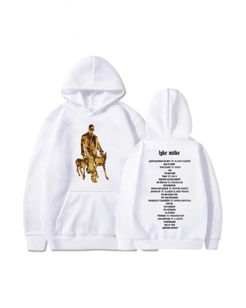 Beyaz Unisex LYKE MIIKE 2025 Albümü Baskı Kapüşonlular Myke Towers Rapçi Hip Hop Sokak Rahat Erkek