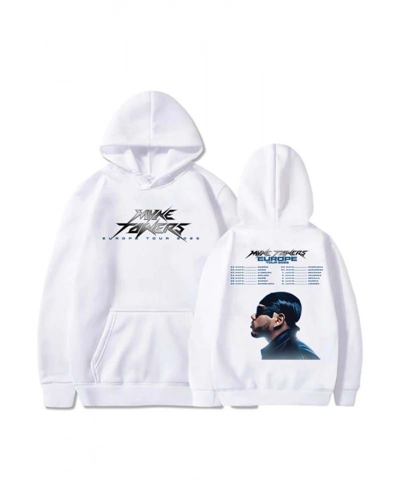 Beyaz Unisex Myke Towers Avrupa Turu Casual ErkekSokak