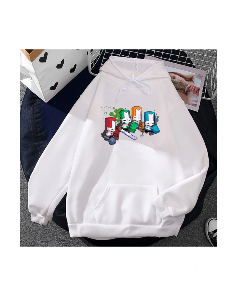 Beyaz Unisex Oyun kalesi-kırıcılar grafik giyim rahat kapüşonlu Streetwe