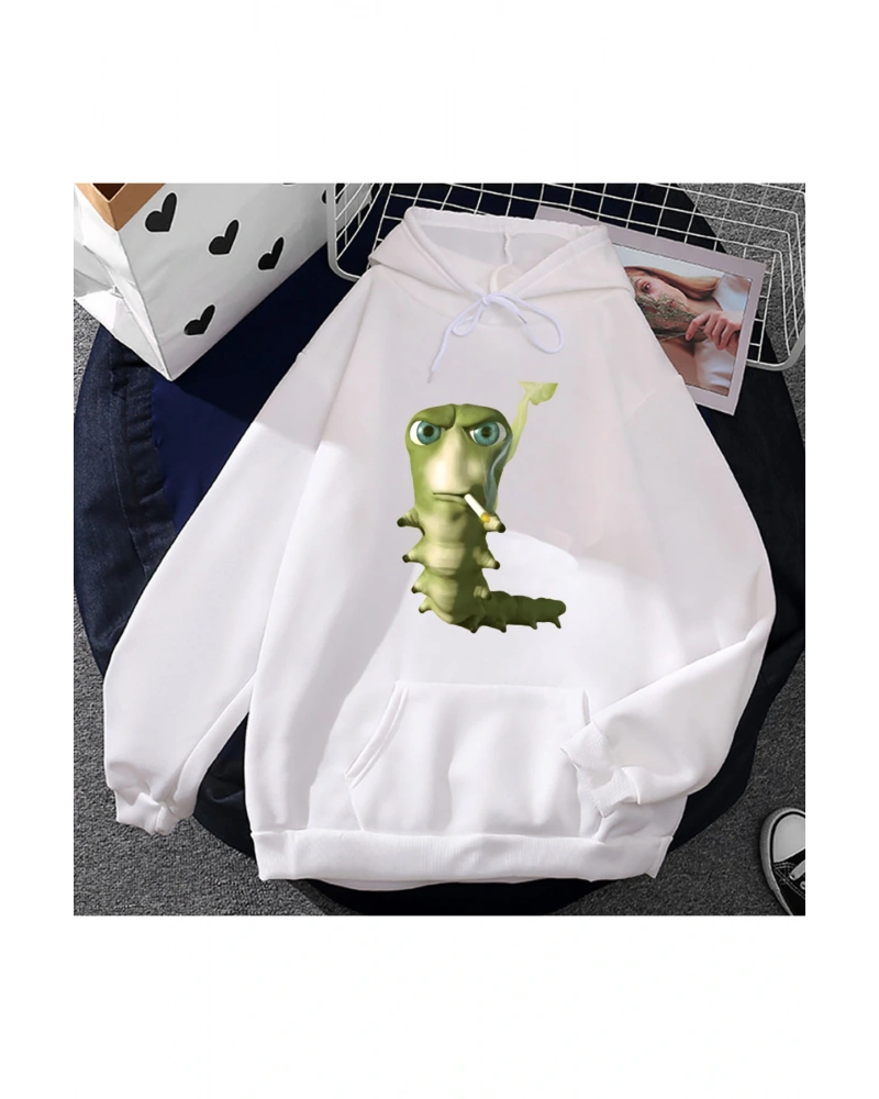 Beyaz Unisex Sigara Kapüşonlular Komik Karikatür Kapşonlu Rahat Sevimli Grafik