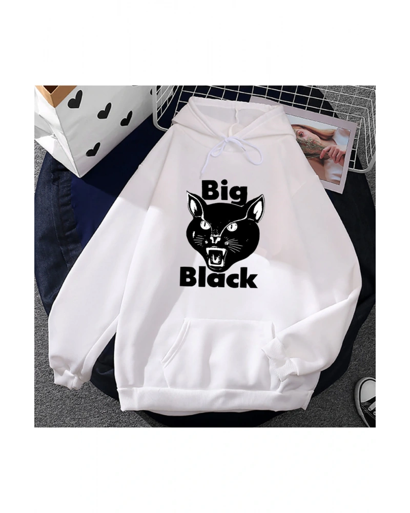 Beyaz Unisex siyah bant kedi grafik baskı ağır zihinsel moda stil kapşonlu