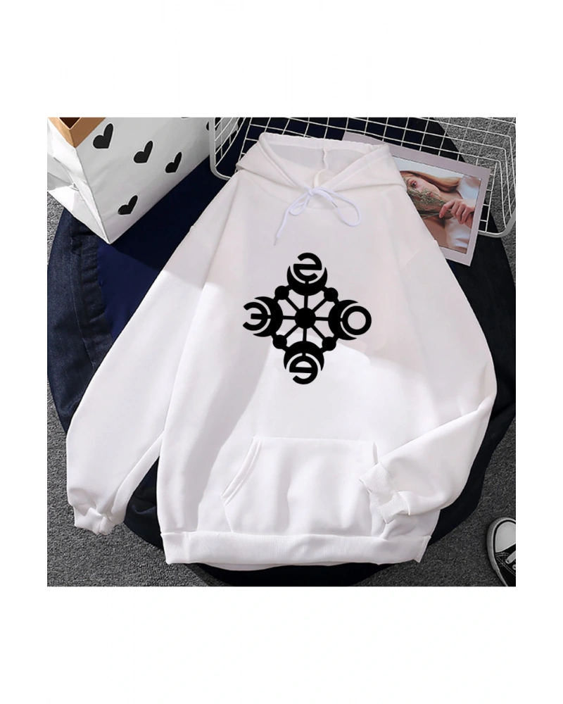 YQYQ----- Oversize Kulaklık Genç Kız Siyah Beyaz Tasarım Baskılı Unisex Kapüşonlu Sweatshirt Hoodie