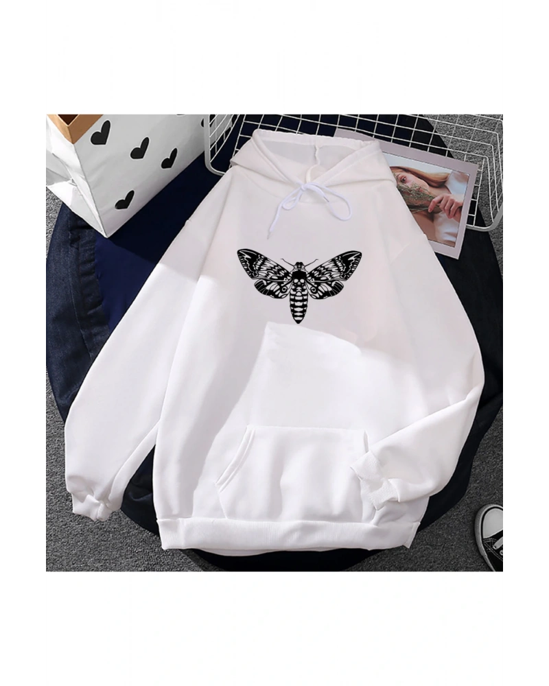 Beyaz Unisex Yumuşaki öpücük ölüm MOTHICA caderas Con Capucha Casua