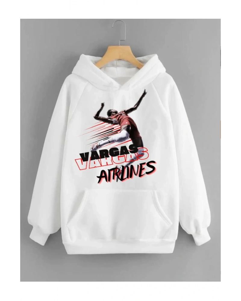 Beyaz Vargas Baskılı Oversize Kapuşonlu Unisex Sweatshirt Bsgvargas