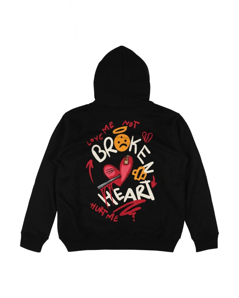 Broken Heart Siyah Oversize Unisex Kapüşonlu Sweatshirt Hoodie