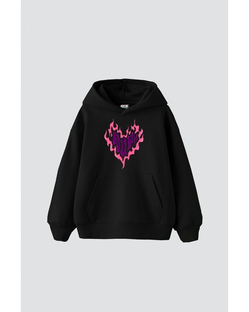 Burn Heart Baskılı Oversize Unisex Premium Siyah