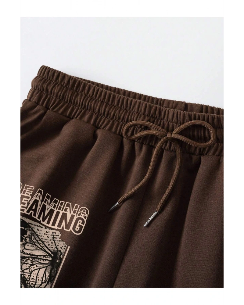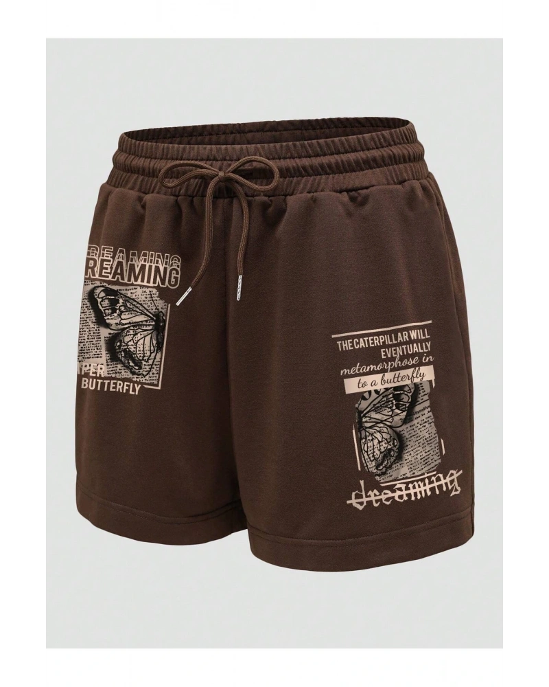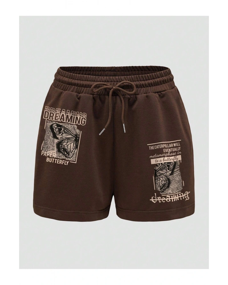 Butterfly & Letter Graphic Drawstring Waist Şort