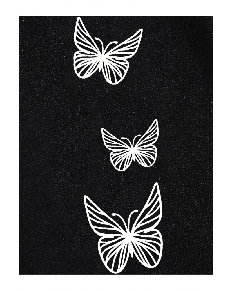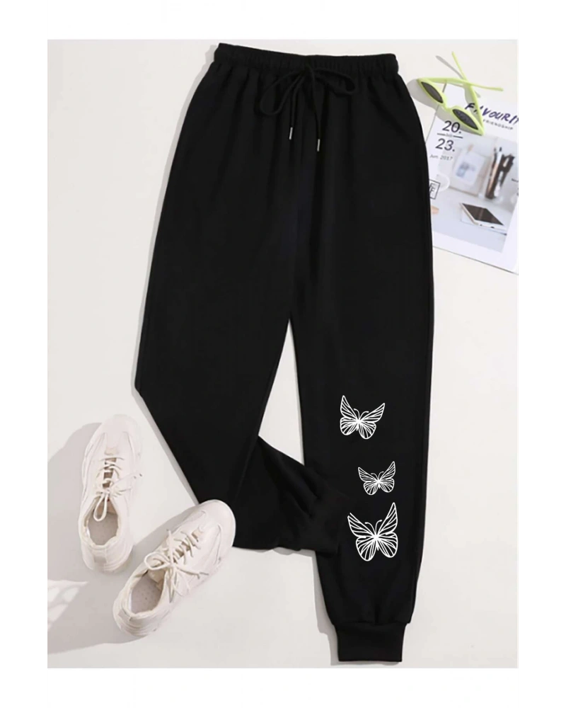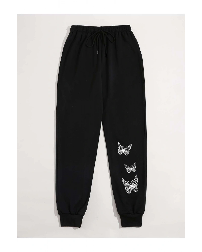 Butterfly Print Drawstring Waist 4 Mevsim Eşofman
