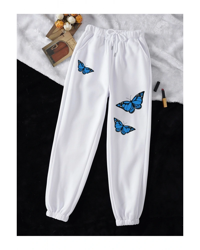 Butterfly Print Drawstring Waist 4 Mevsim Eşofman