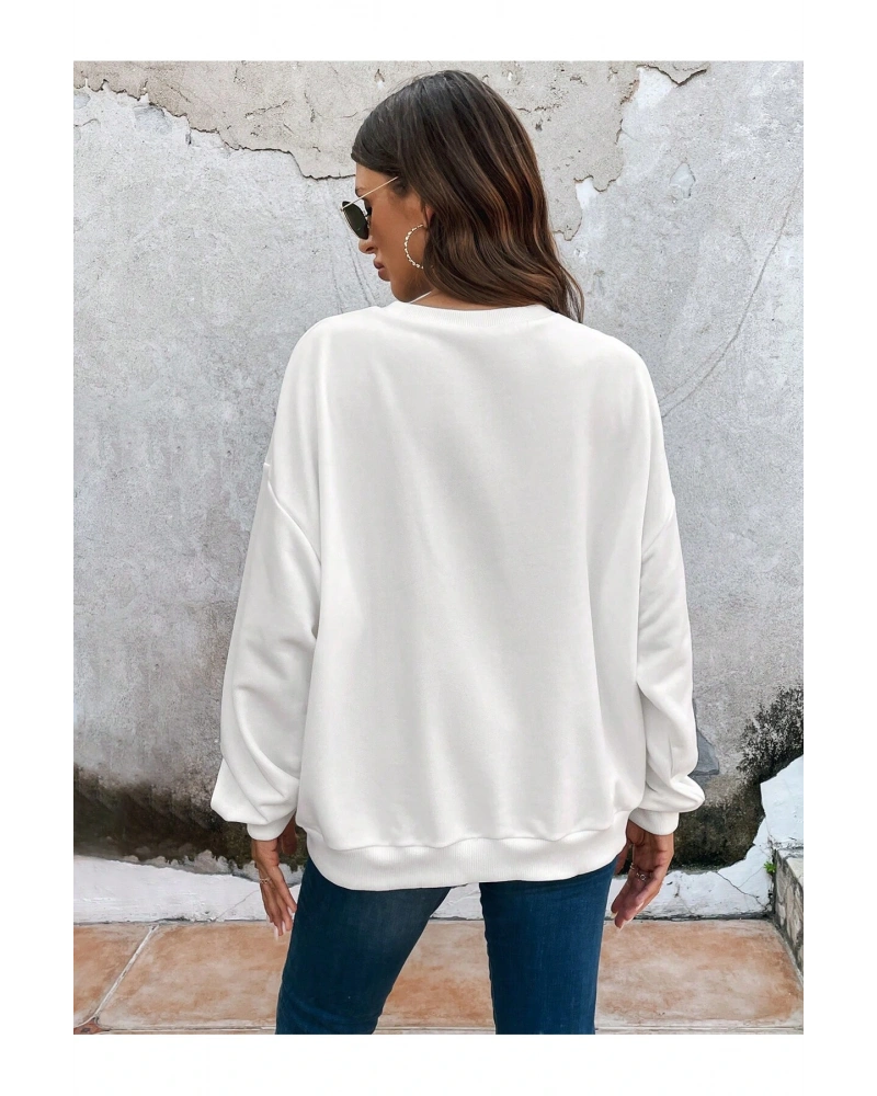 Manfinity EMRG Cartoon And Slogan Graphic Sweatshirt Beyaz