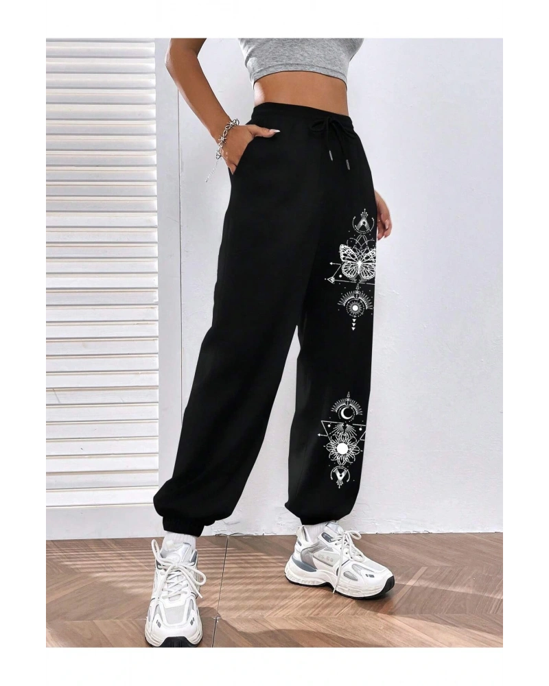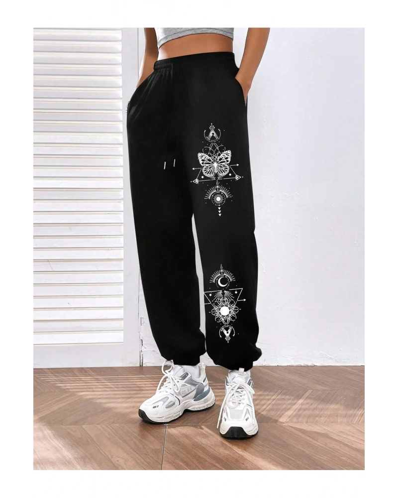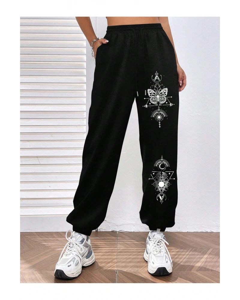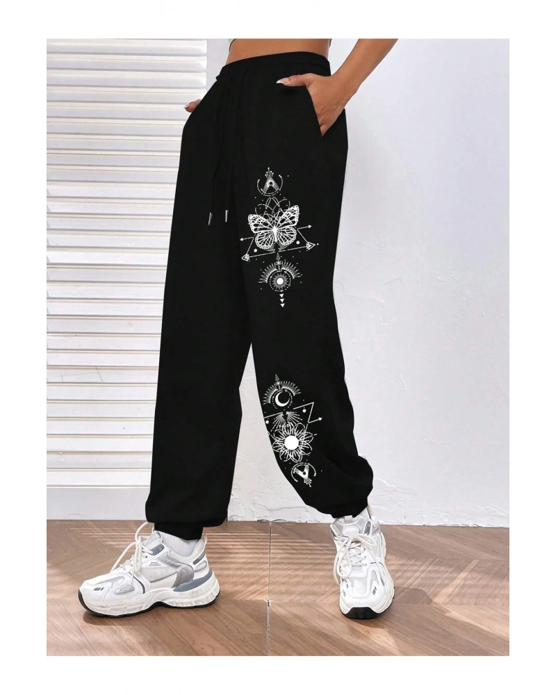 Butterfly Print Elastic Waist 4 Mevsim Eşofman