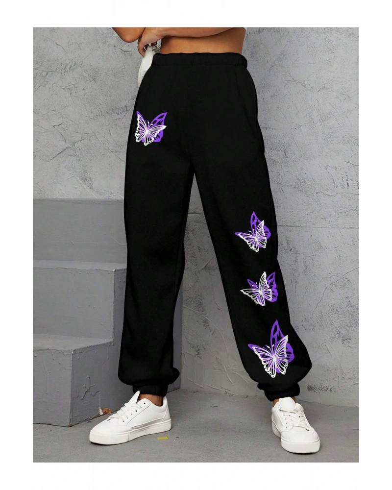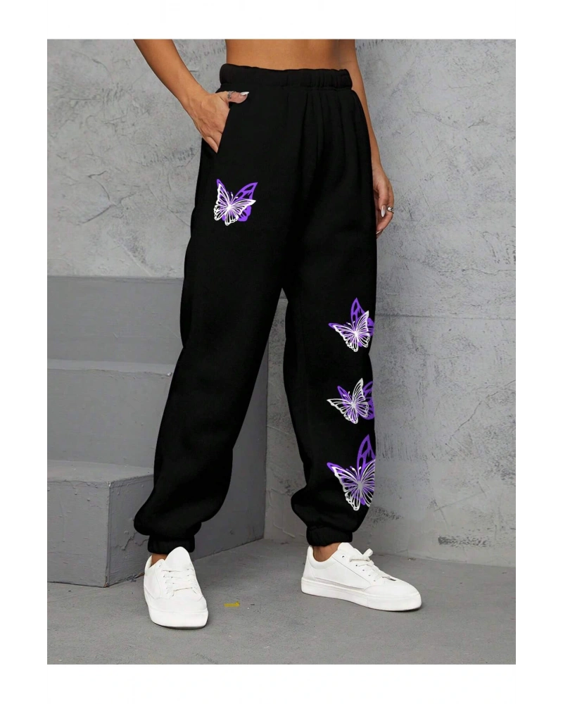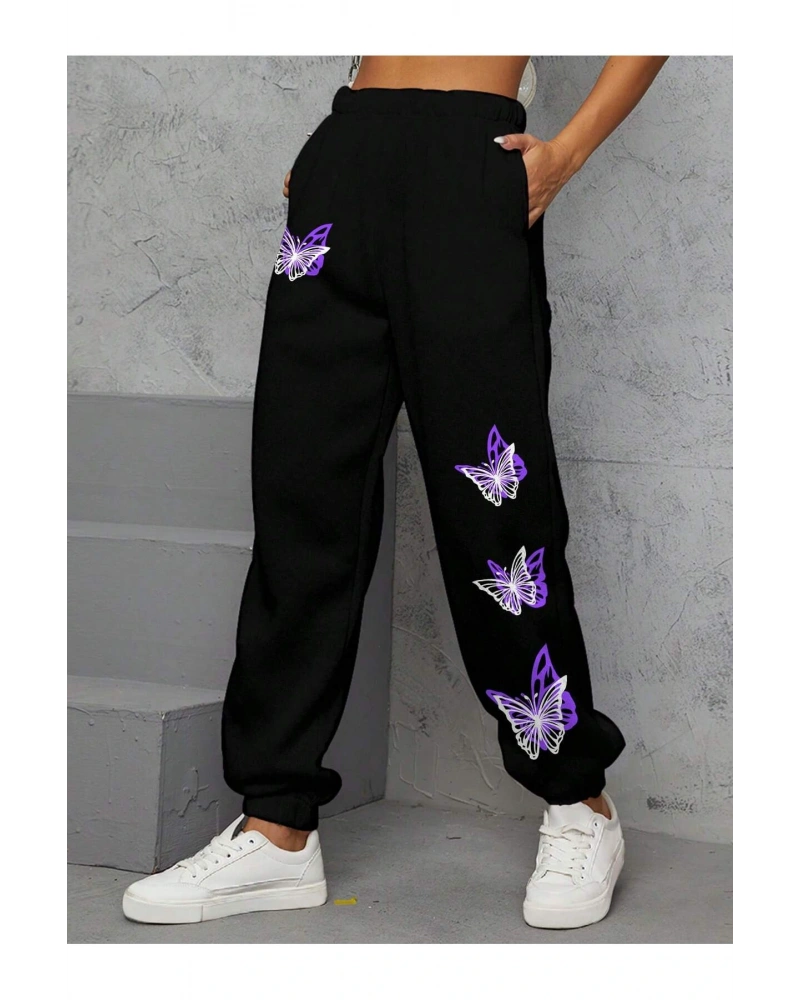 Butterfly Print Slant Pocket 4 Mevsim Eşofman