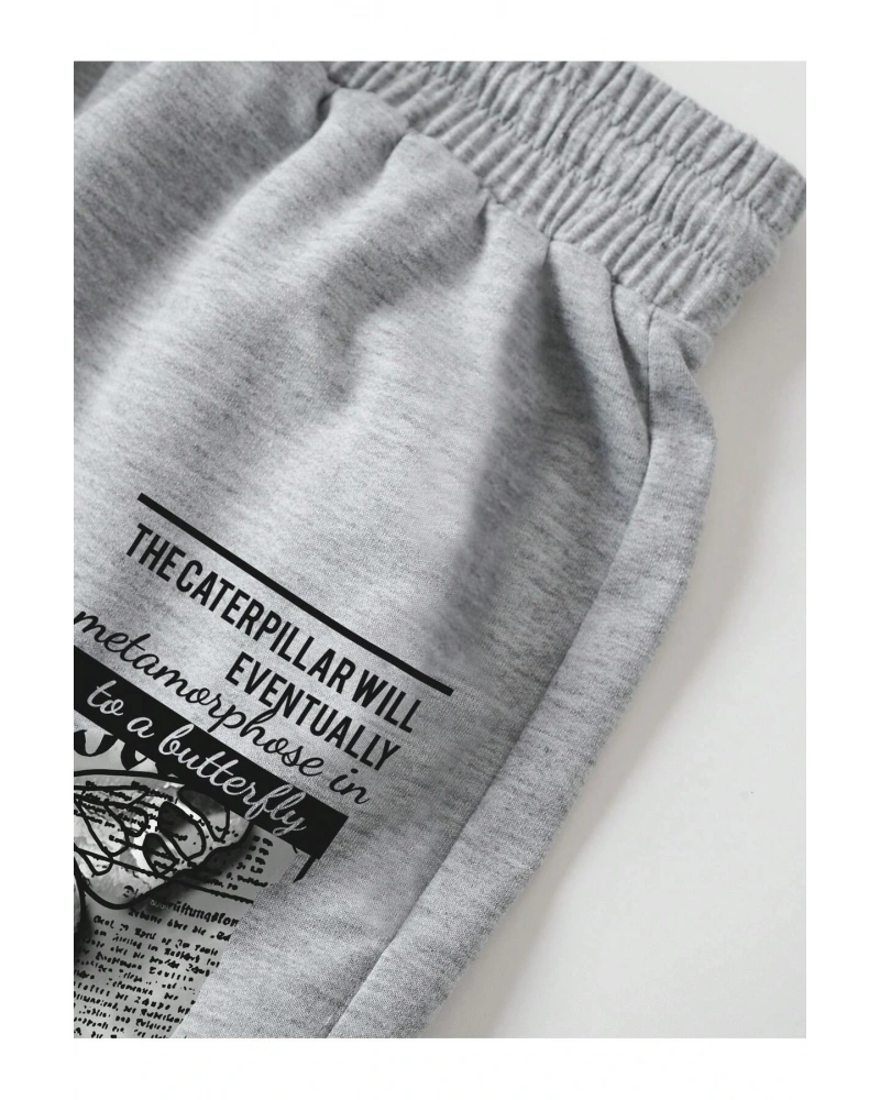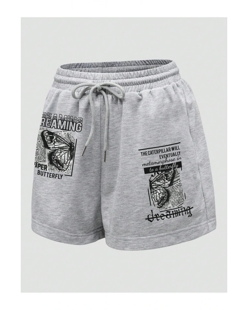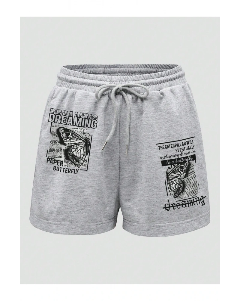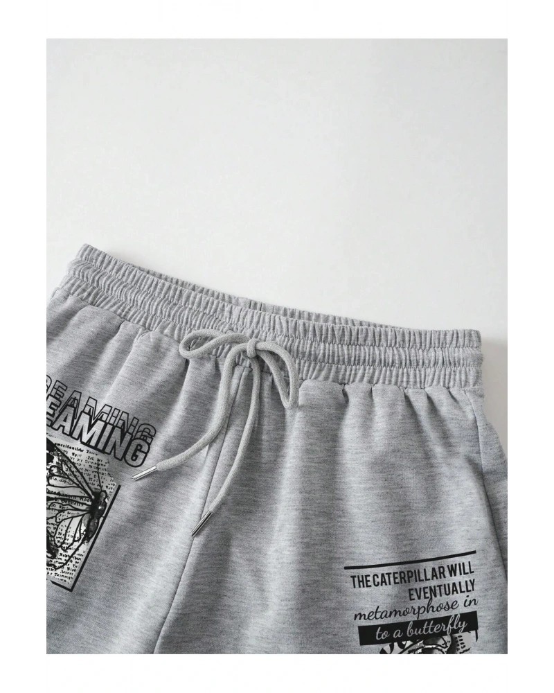 Butterfly & Slogan Graphic Drawstring Waist Şort