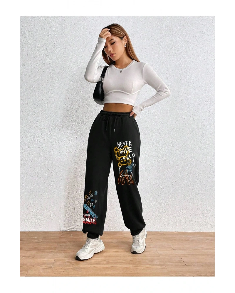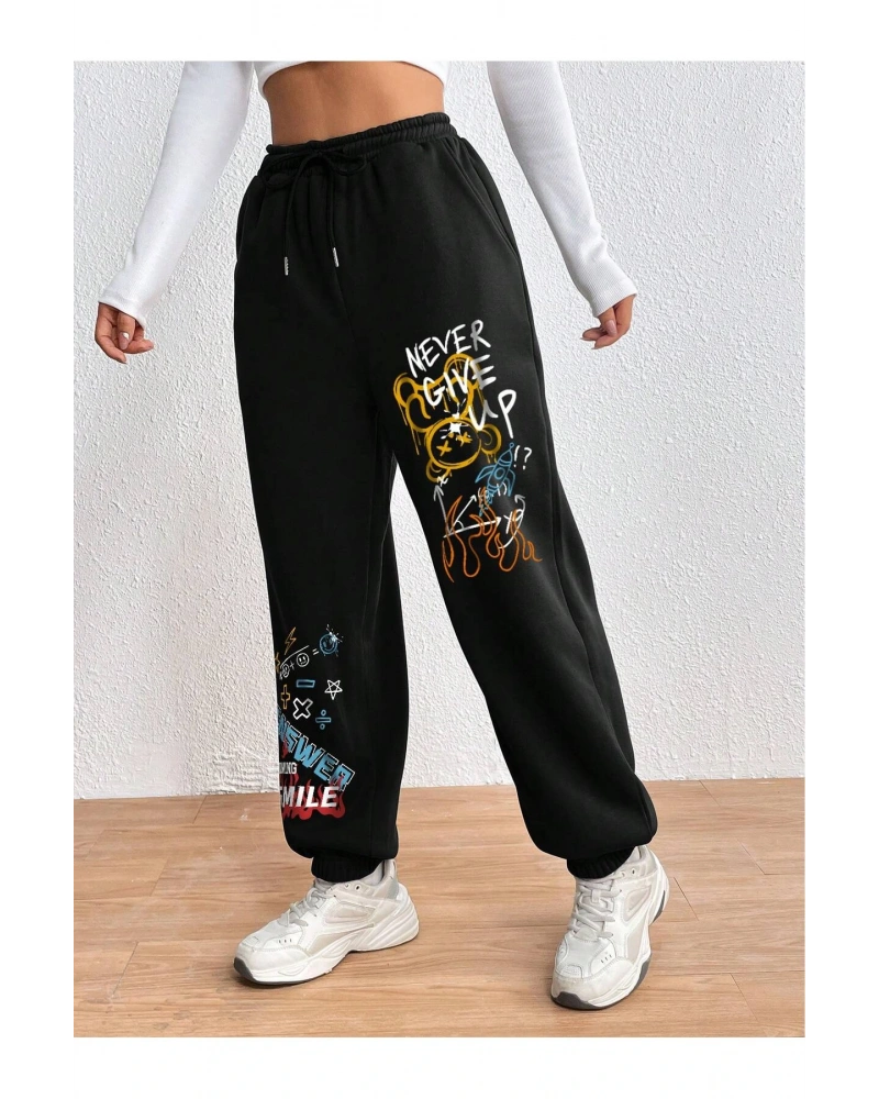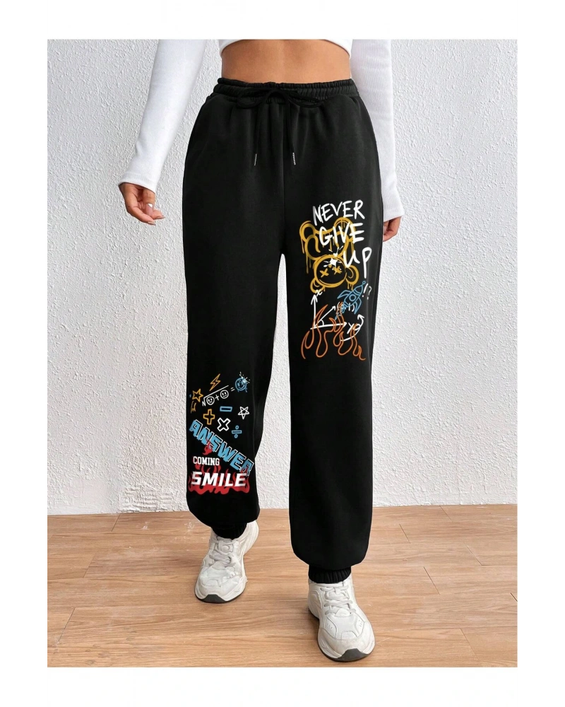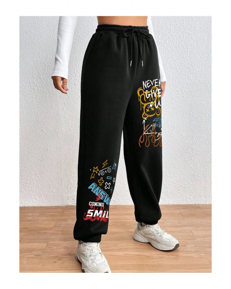 Expression Print Drawstring Waist Eşofman Altı