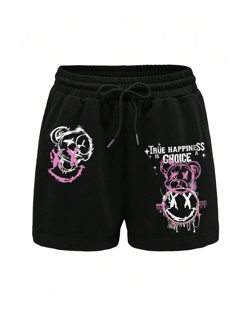Cartoon Graphic Drawstring Waist Şort