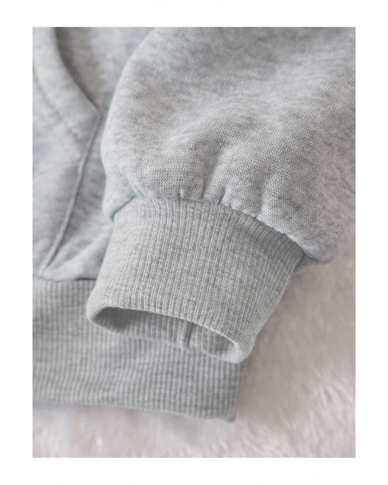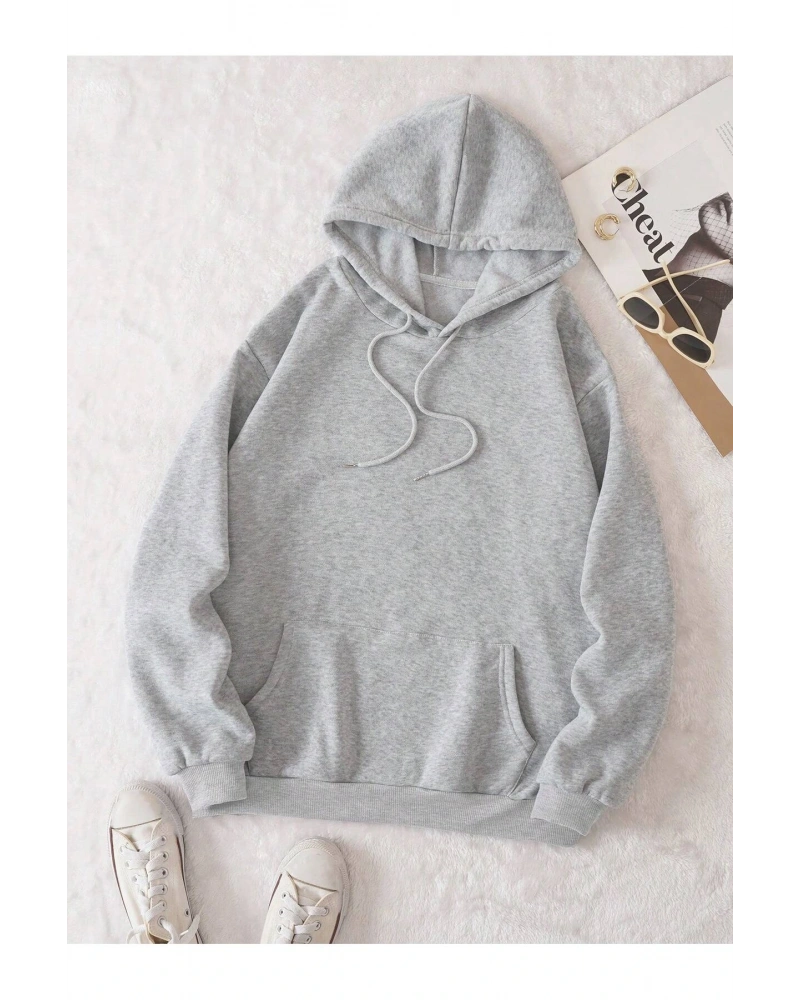 Yasolin----Kadın Gri New Rochelle Baskılı Kapüşonlu Oversize Sweatshirt